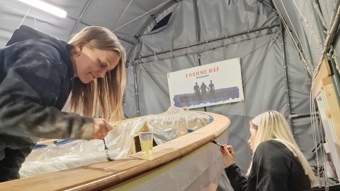 Stavern Kystkultursenter har gjort en fantastisk dugnadsinnsats og rehabilitert østveggen på Fiskernes hus.